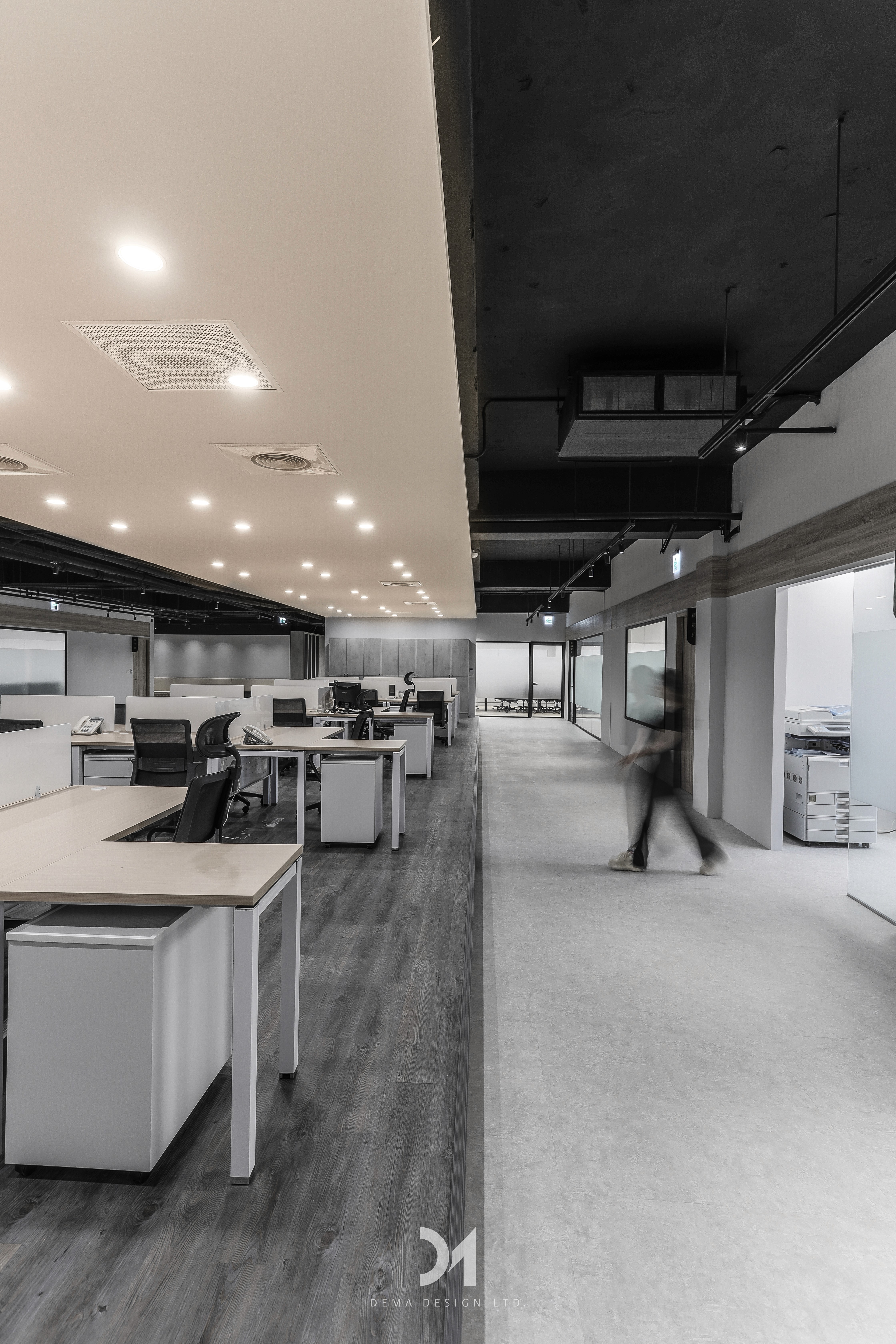 本案為大豐建築之企業辦公空間,設計核心在於回應建築產業長時間、高專注度的工作型態,並在理性秩序中,建立一個具備穩定感與專業氣質的工作場域。 整體空間以「清楚分區、降低干擾」為出發點,透過開放辦公區、會議空間與接待動線的層次配置,讓日常運作保持流暢,同時保留必要的隱私與安定感。玻璃隔間的運用,在維持視覺通透的同時,確保空間界線明確,避免視覺與聲音上的過度干擾